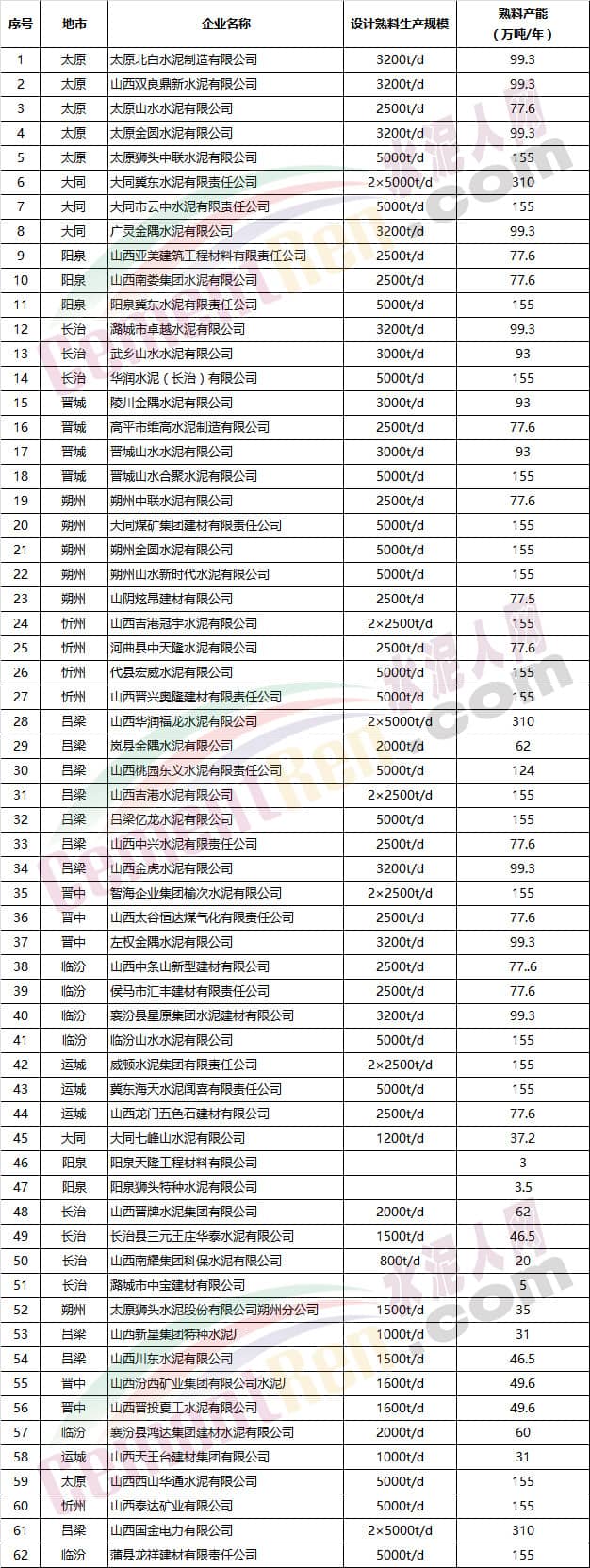 附:山西省部分水泥企業(yè)名單