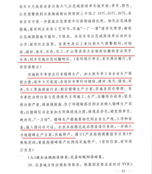 實(shí)施秋冬季重點(diǎn)行業(yè)錯(cuò)峰生產(chǎn),加大秋冬季工業(yè)企業(yè)生產(chǎn)調(diào)控力度,每年9月底前,各設(shè)區(qū)市要針對(duì)建材、鋼鐵等高排放行業(yè),制定錯(cuò)峰生產(chǎn)方案,實(shí)施差別化管理。