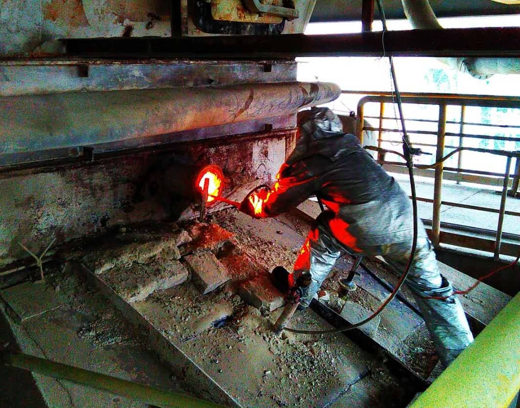 這厚厚的防火服既是他們的“鎧甲”,也是他們炎炎夏日里的“枷鎖”,隨著他們清理預(yù)熱器結(jié)皮,一下、兩下,汗水已經(jīng)浸濕了他們的衣衫,火紅的炙烤下,他們?nèi)匀煌业墓ぷ髦?/p>