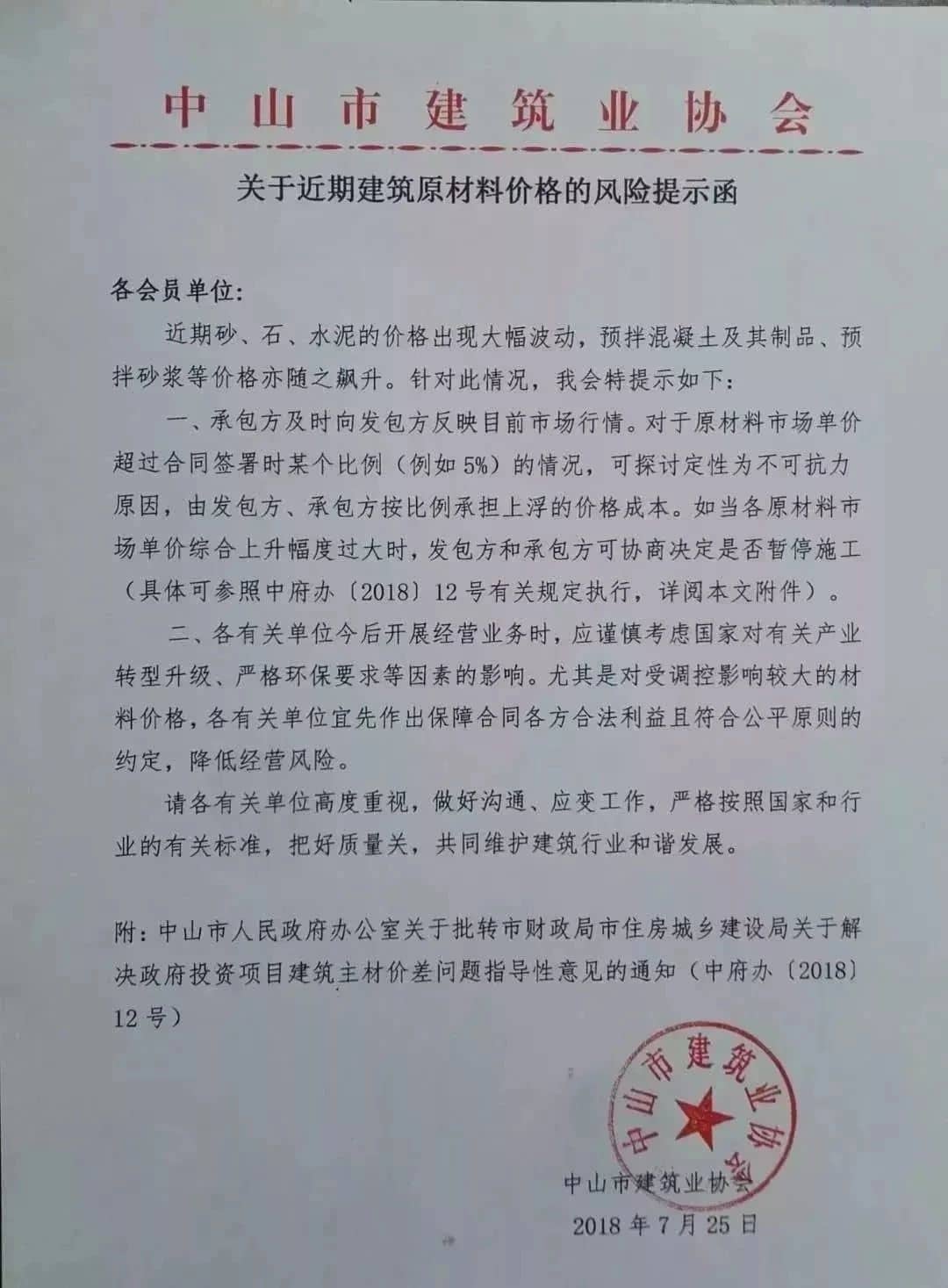 7月25日,中山市建筑業(yè)協(xié)會(huì)發(fā)文,要求: