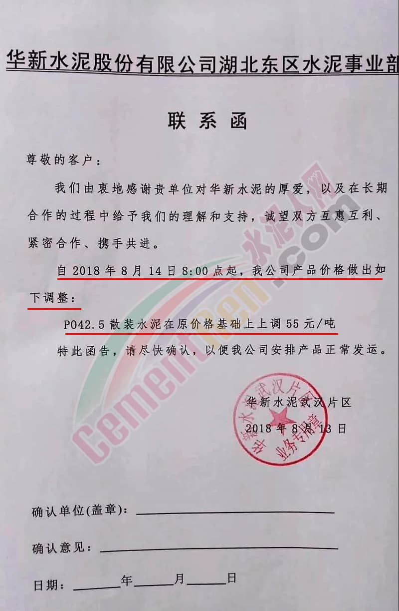 【水泥人網(wǎng)】繼上周河南地區(qū)宣布全區(qū)域提價(jià)之后,湖北部分地區(qū)也通知客戶上調(diào)出廠價(jià)格,漲幅在50-65元/噸。據(jù)水泥人網(wǎng)了解,目前區(qū)域內(nèi)水泥熟料庫位較低,加之進(jìn)入八月中旬下游需求有所提升。調(diào)提價(jià)通知如下: