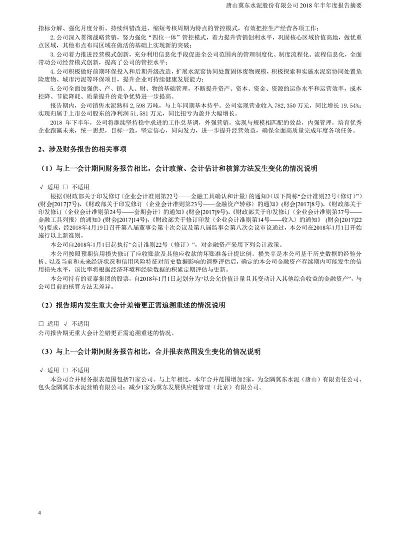 5.公司全面加強供、產(chǎn)、銷、人、財、物的基礎(chǔ)管理,不斷提升資產(chǎn)、資本、資金、資源的運作水平和運營效率,成本控降、節(jié)能降耗、質(zhì)量提升的競爭優(yōu)勢進一步提高。報告期內(nèi),公司銷售水泥熟料 2,598 萬噸,與上年同期基本持平。公司實現(xiàn)營業(yè)收入 782,350 萬元,同比增長 19.54%;實現(xiàn)歸屬于上市公司股東的凈利潤 51,581 萬元,同比扭虧為盈并大幅增長。