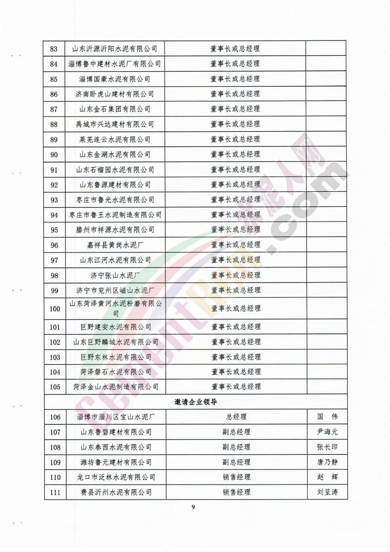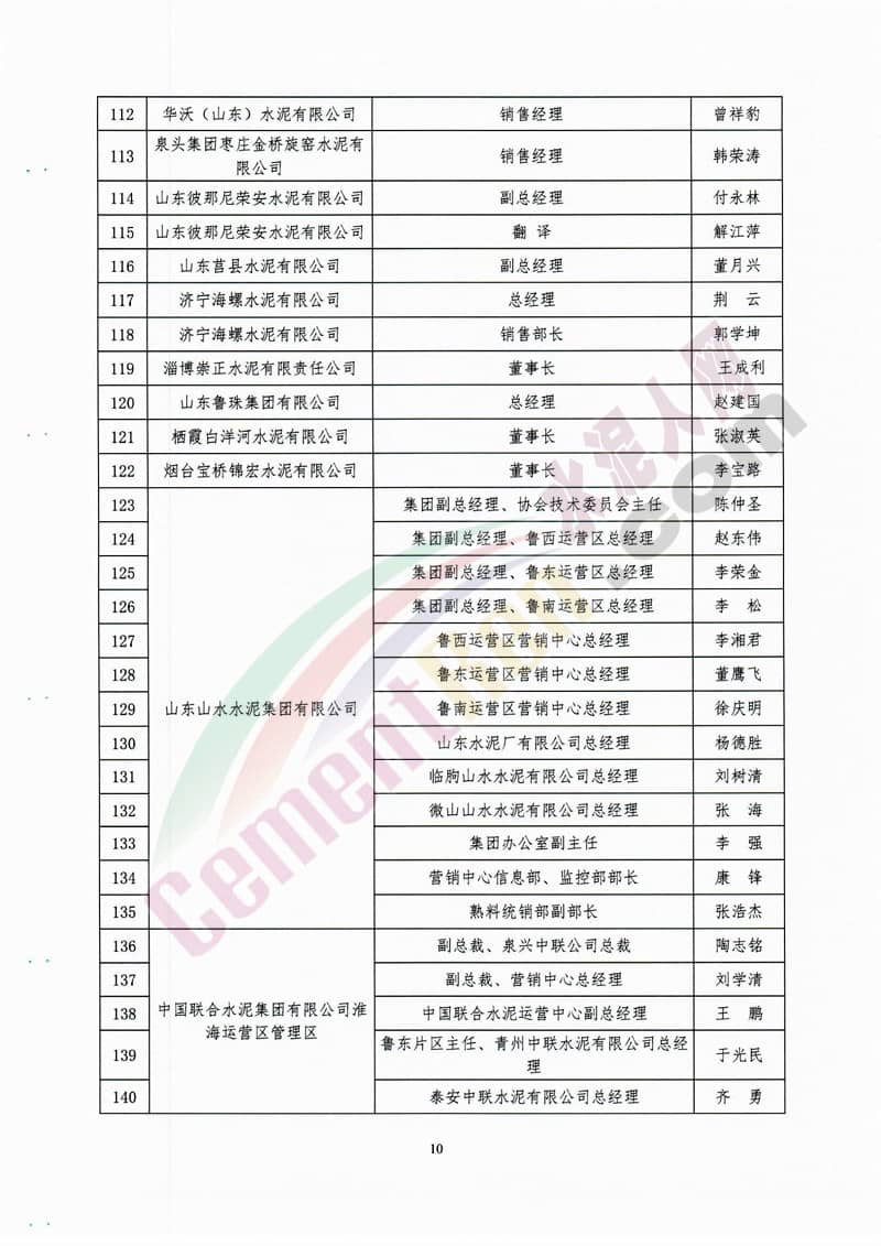 參加會議的主要領導和代表有山東省經(jīng)信委副主任王超英,中國水泥協(xié)會常務副會長孔祥忠,中國水泥協(xié)會副會長秘書長、中聯(lián)水泥集團黨委書記、董事長崔星太,山東省環(huán)保廳大氣污染防治處處長肖紅,山東省社會組織管理局副局長邢洪銳,中國水泥協(xié)會副會長、中聯(lián)水泥集團總經(jīng)理孫建成,山東建材工業(yè)協(xié)會會長李峰、山東省水泥行業(yè)協(xié)會會長趙利平等。