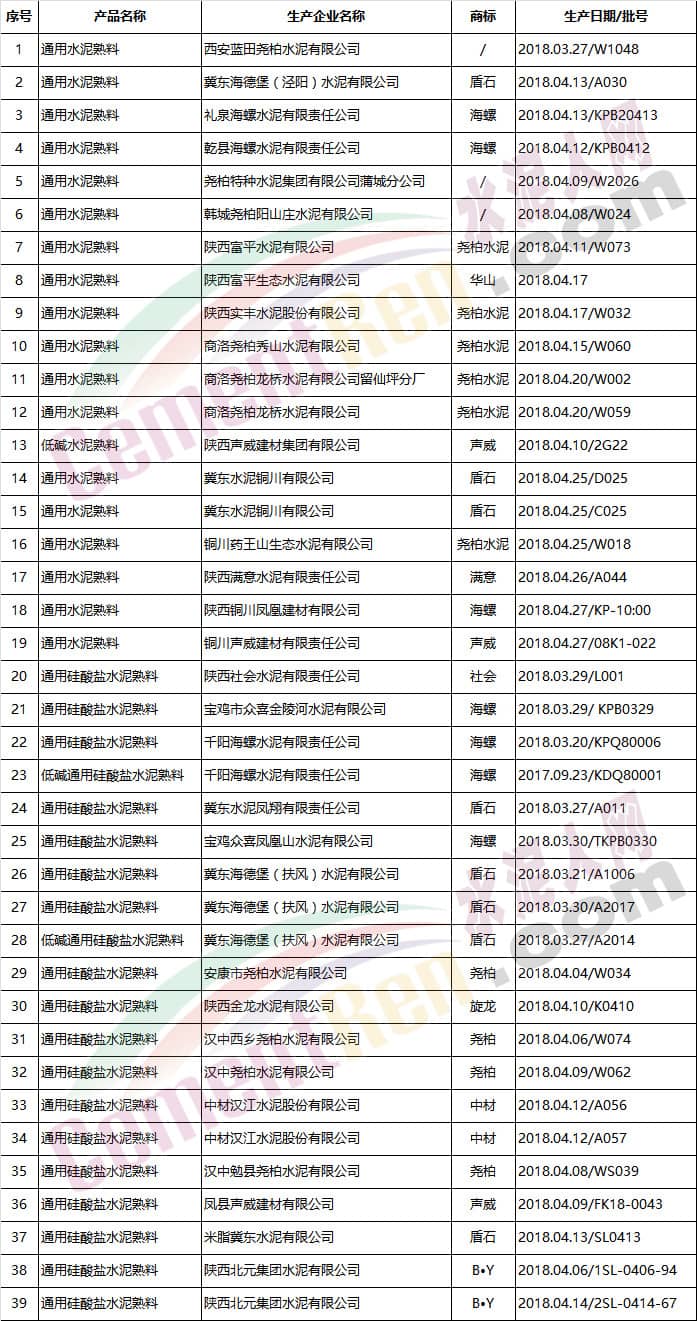 水泥合格產(chǎn)品及其企業(yè)名單