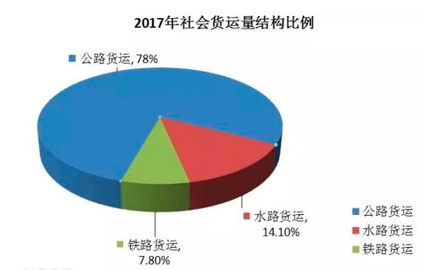 2017年我國完成社會(huì)貨運(yùn)量472.4億噸,貨運(yùn)周轉(zhuǎn)量19.3億噸,這份全球第一的貨運(yùn)成績(jī)單里,公路運(yùn)輸占78%、水路運(yùn)輸占14.1%,鐵路運(yùn)輸占7.8%。