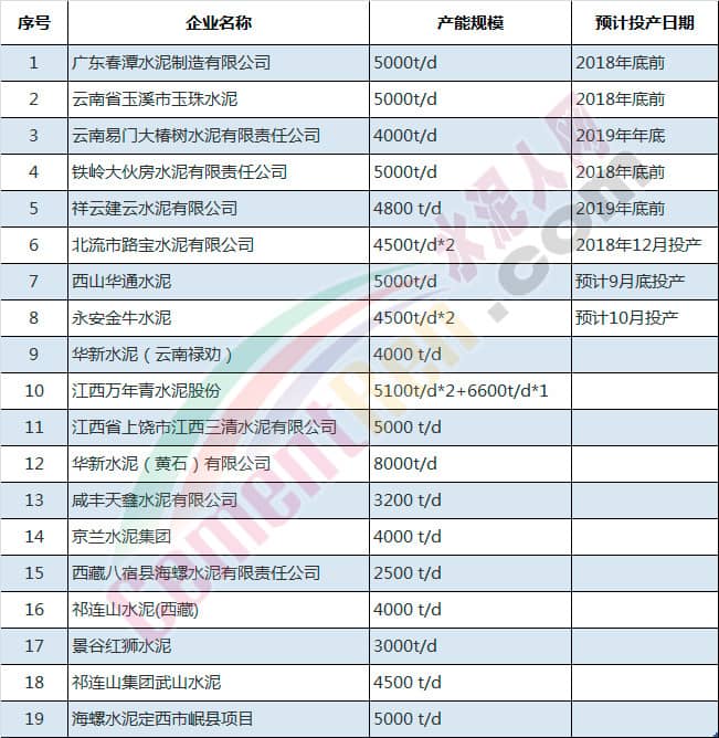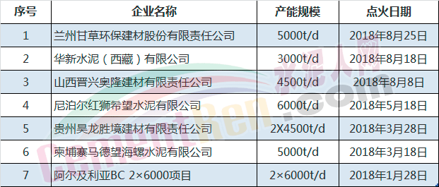 據(jù)不完全統(tǒng)計(jì),2018年以來新建點(diǎn)火以及在建水泥生產(chǎn)線如下: