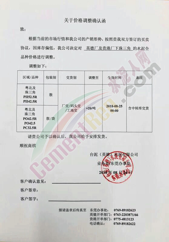 【水泥人網(wǎng)】近幾日華南珠三角區(qū)域處在一片漲價潮中,先后有二十余家水泥企業(yè)發(fā)布提價通知。截止昨日晚間,本輪的水泥漲價潮漸近尾聲,該漲的品牌都漲了,還沒漲的這兩天也將跟漲,水泥漲了,砂漲了,混凝土也漲了。