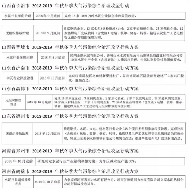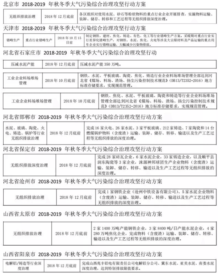 自2018年10月 1 日起,嚴(yán)格執(zhí)行火電、鋼鐵、石化、化工、有色(不含氧化鋁)、水泥行業(yè)以及工業(yè)鍋爐大氣污染物特別排放限值(見附件),推進重點行業(yè)污染治理設(shè)施升級改造。繼續(xù)推進工業(yè)企業(yè)無組織排放治理,在安全生產(chǎn)許可條件下,實施封閉儲存、密閉輸送、系統(tǒng)收集,2018 年 12 月底前基本完成。