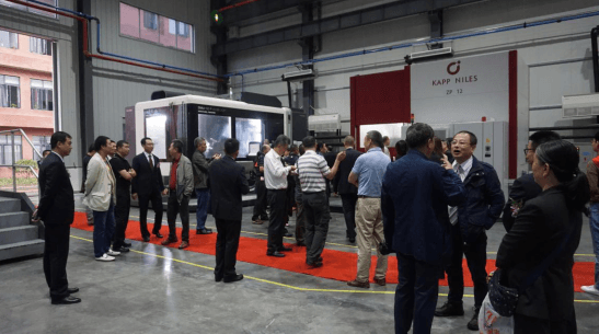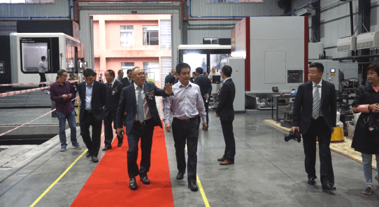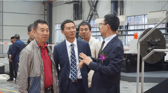 智展何榮董事長在五軸加工中心與嘉賓交流