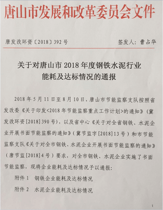 唐山市發(fā)改委發(fā)布《關于對唐山市2018年度鋼鐵水泥行業(yè)能耗及達標情況的通報》(下簡稱《通報》)?!锻▓蟆分赋鎏其摷瘓F、唐鋼不銹、首鋼遷鋼等37家鋼鐵企業(yè)白灰、焦化、燒結、球團、高爐、轉爐、電弧爐工序能耗全部達標,唐山市玉田金州實業(yè)、唐山安泰鋼鐵、唐山津西鋼鐵集團正達鋼鐵、唐山貝氏體鋼鐵(集團)公司、唐山貝氏體鋼鐵(集團)福豐鋼鐵、唐山市清泉鋼鐵集團6家鋼企停產。