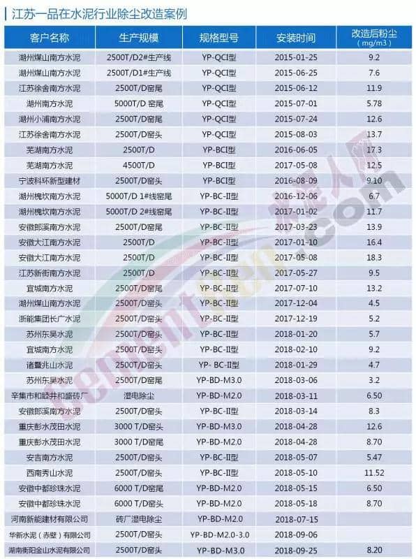 就在眾多電除塵器和除塵電源生產(chǎn)企業(yè)對電除塵器超低排放不抱希望時,江蘇一品環(huán)保人,審時度勢,敢為天下先,決定嘗試將電除塵器通過技術(shù)改造,也能符合國家要求達到超低排放標準。決心下定后,公司即組織技術(shù)人員,走訪和考察了諸多水泥企業(yè),悉心聽取水泥生產(chǎn)企業(yè)電氣設(shè)備部門一線技術(shù)人員的建議和設(shè)想,拜訪多名水泥設(shè)計研究人員,結(jié)合目前市場上電除塵器現(xiàn)有結(jié)構(gòu)和應(yīng)用狀況,在本公司已取得電除塵器豐富改造經(jīng)驗的基礎(chǔ)上,再次升級“智能變頻除塵電源”技術(shù),通過不斷的技術(shù)實踐和總結(jié),江蘇一品終于創(chuàng)立一套切實可行的電改電達到超低排放的系統(tǒng)工程技術(shù),從2017年下半年開始,應(yīng)用在10多條水泥生產(chǎn)線窯頭的電除塵器超低排放改造,改造案例已成功運行近一年,一直穩(wěn)定在<10mg/m3的超低排放標準!