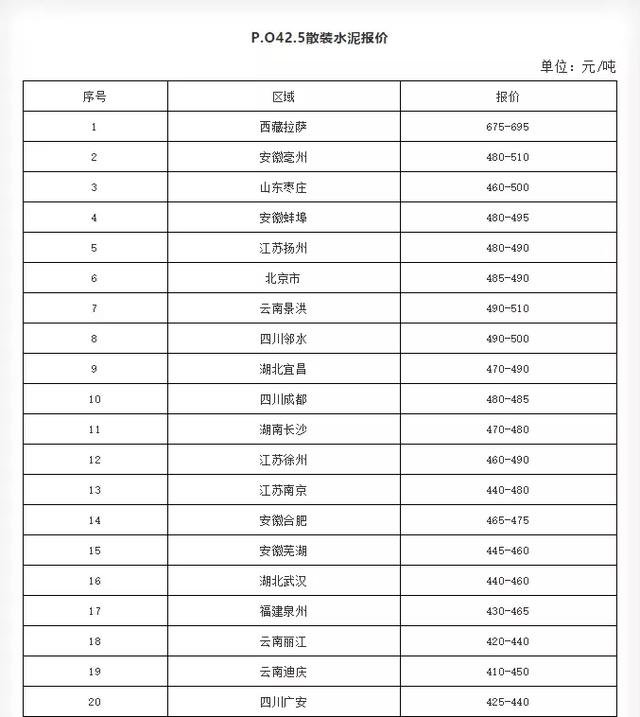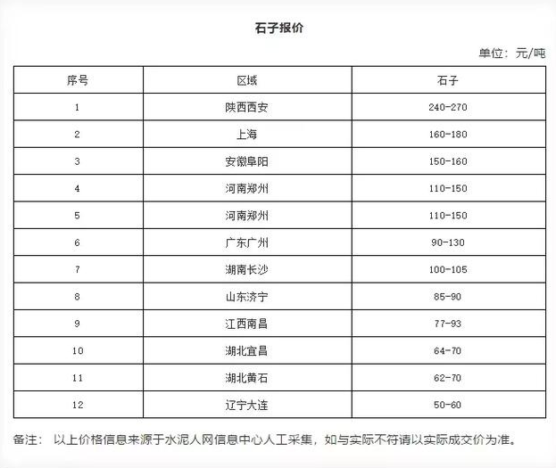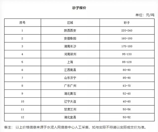 備注:以上價(jià)格信息來源于水泥人網(wǎng)信息中心人工采集,如與實(shí)際不符請以實(shí)際成交價(jià)為準(zhǔn)。
