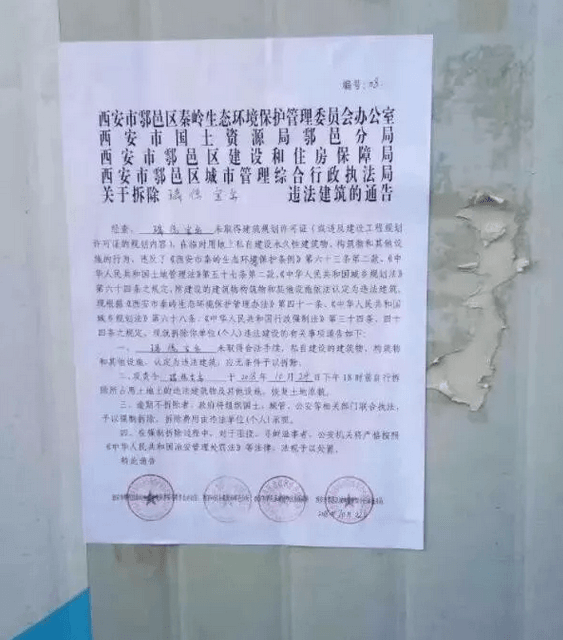 前天(10月24日),秦嶺山谷內(nèi)的陜西瑞德寶爾礦山因“未取得建筑規(guī)劃許可證”、“私自建設違法建筑物”當?shù)貓?zhí)法部門限其前天18點前自行拆除所占土地上的違法建筑及其他設施,恢復土地原貌。