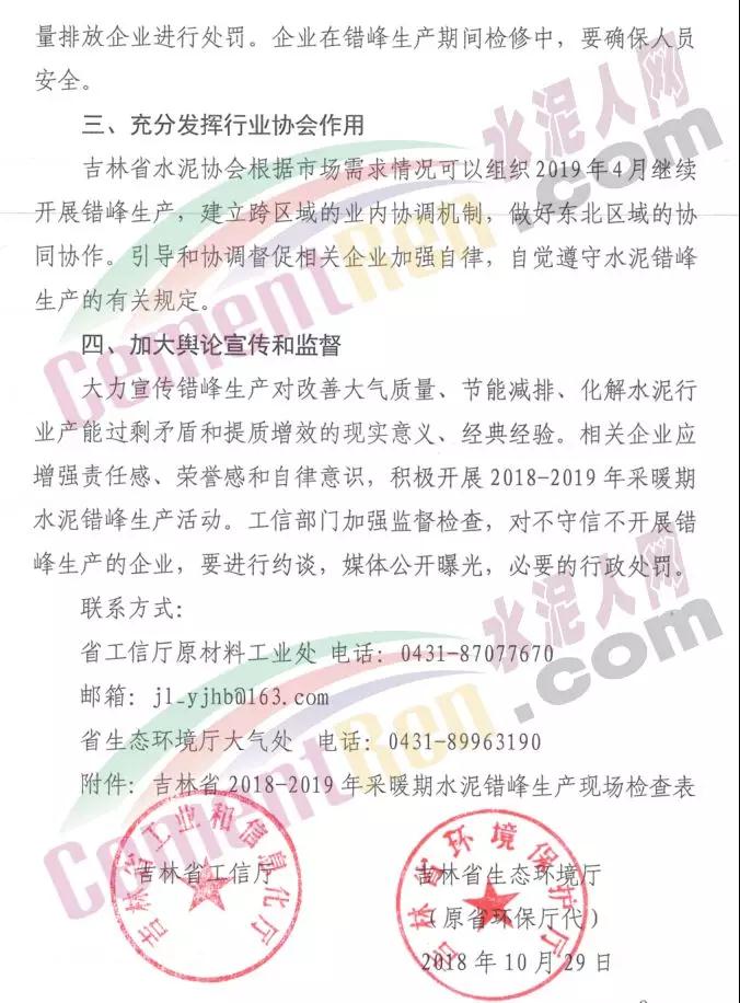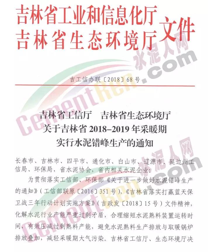 據(jù)水泥人網(wǎng)了解,近日吉林省工信廳、生態(tài)環(huán)境廳聯(lián)合發(fā)布《關(guān)于吉林省2018-2019年采暖期實行水泥錯峰生產(chǎn)的通知》(以下簡稱“通知”),通知明確要求,省內(nèi)所有水泥熟料生產(chǎn)企業(yè)(含利用電石渣生產(chǎn)熟料的企業(yè))于2018年11月1日至2019年3月31日全面實行錯峰生產(chǎn),其中承擔(dān)居民供暖、協(xié)同處置城市生活垃及有毒有害廢棄物等任務(wù)的生產(chǎn)線經(jīng)批準(zhǔn)后可以不進(jìn)行錯峰生產(chǎn),但應(yīng)適當(dāng)降低水泥生產(chǎn)負(fù)荷。屬地市(州)工信、環(huán)保部門要加強(qiáng)對不錯峰生產(chǎn)企業(yè)落實承擔(dān)任務(wù)情況監(jiān)督核查,并進(jìn)行備案。2019年4月1日后,省水泥協(xié)會組織企業(yè)根據(jù)實際情況,可繼續(xù)開展錯峰生產(chǎn),延續(xù)到4月30日。