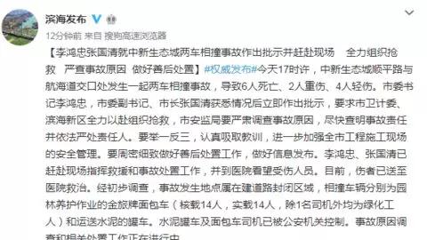 天津市濱海新區(qū)政府官方微博消息,昨日(11月1日) 17時(shí)許,中新生態(tài)城順平路與航海道交口處發(fā)生一起兩車相撞事故,導(dǎo)致6人死亡、2人重傷、4人輕傷。