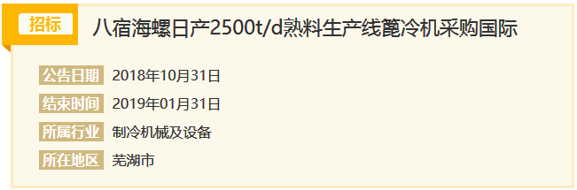 招標(biāo)項目名稱:八宿海螺日產(chǎn)2500t/d熟料生產(chǎn)線篦冷機(jī)采購