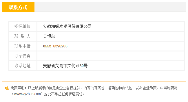 招標(biāo)人:安徽海螺水泥股份有限公司
