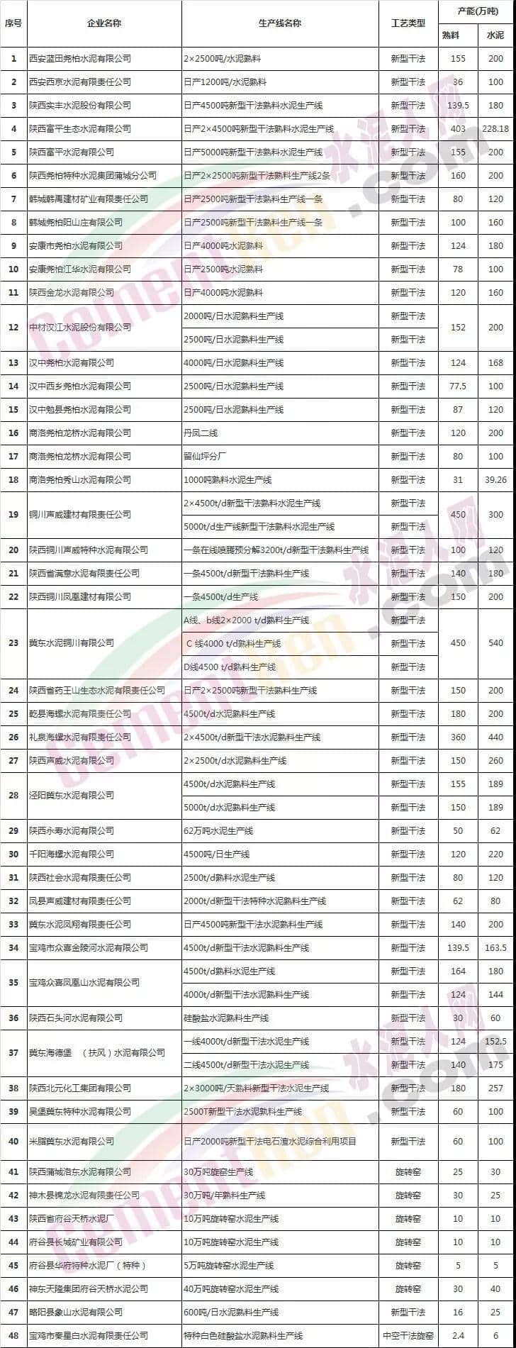 陜西省水泥企業(yè)名單