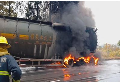 水泥車(chē)途中起火 徐州消防撲救排險(xiǎn)