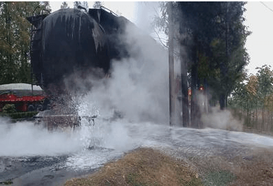 途中消防員迅速與報(bào)警人取得聯(lián)系,了解現(xiàn)場(chǎng)具體情況。經(jīng)了解,是從山東開(kāi)往睢寧方向一輛運(yùn)輸水泥的罐車(chē)著火。中隊(duì)抵達(dá)現(xiàn)場(chǎng),迅速鋪設(shè)水帶出水滅火,經(jīng)過(guò)15分鐘左右的撲救明火被撲滅。據(jù)車(chē)主了解,是由于車(chē)子在行駛過(guò)程中爆胎引發(fā)起火的,主要燃燒部位為后輪胎。事故所幸沒(méi)有造成人員被困和受傷。