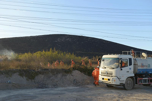 10月27日下午,邢郭鎮(zhèn)王家洞村山上出現(xiàn)明火。大火借助風(fēng)勢,火焰迅速蔓延,給周邊的村民人身財產(chǎn)安全帶來極大隱患?;鹎榫褪敲?,贊皇金隅公司第一時間啟動消防應(yīng)急預(yù)案,并通過微信群、電話等方式通報火情,呼吁大家滅火。同時調(diào)度部署辦公室灑水車緊急戒備、隨時待命。
