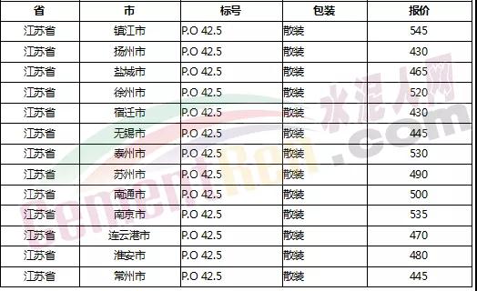 PO42.5散裝 所有區(qū)域上調(diào)30元/噸