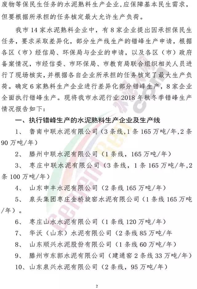 《通知》明確要求,棗莊市水泥熟料生產企業(yè)和生產線全部實行錯峰生產,涉及供暖、協(xié)同處置城市垃圾或危險廢物等保民生任務的水泥熟料生產企業(yè),應保障基本民生需求,但要根據(jù)所承擔的任務核定最大允許生產負荷。