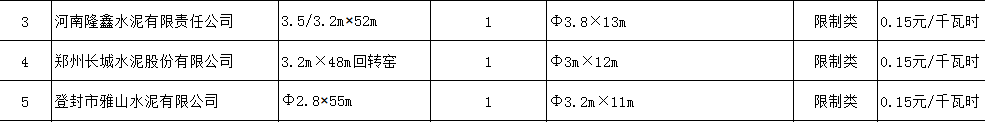 一、鄭州煤炭工業(yè)集團(tuán)龍力水泥有限責(zé)任公司、天瑞集團(tuán)鄭州水泥有限公司、中國長城鋁業(yè)有限公司水泥廠、登封中聯(lián)登電水泥有限公司、天瑞新登鄭州水泥有限公司、登封市嵩基水泥有限公司、登封市宏昌水泥有限公司、登電集團(tuán)水泥有限公司、鄭州順寶水泥股份有限公司、鄭州永華水泥有限公司、新鄭市恒發(fā)水泥廠、河南雙龍建材有限公司、洛鋼集團(tuán)鋼鐵公司等13家企業(yè)用電不加價。