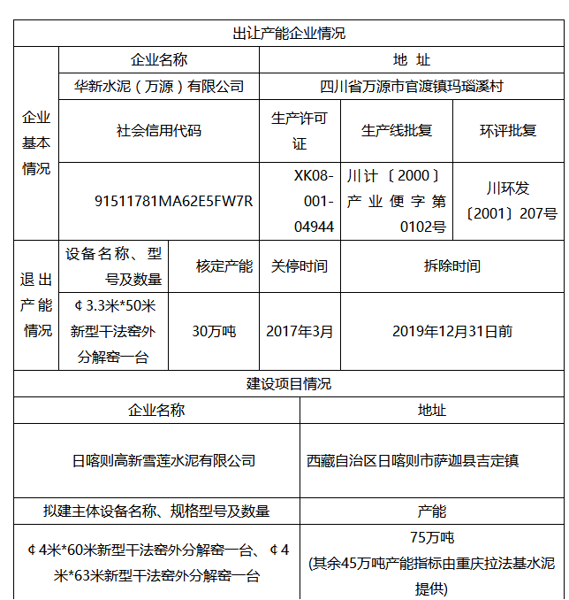 華新水泥(萬(wàn)源)有限公司水泥熟料產(chǎn)能置換方案