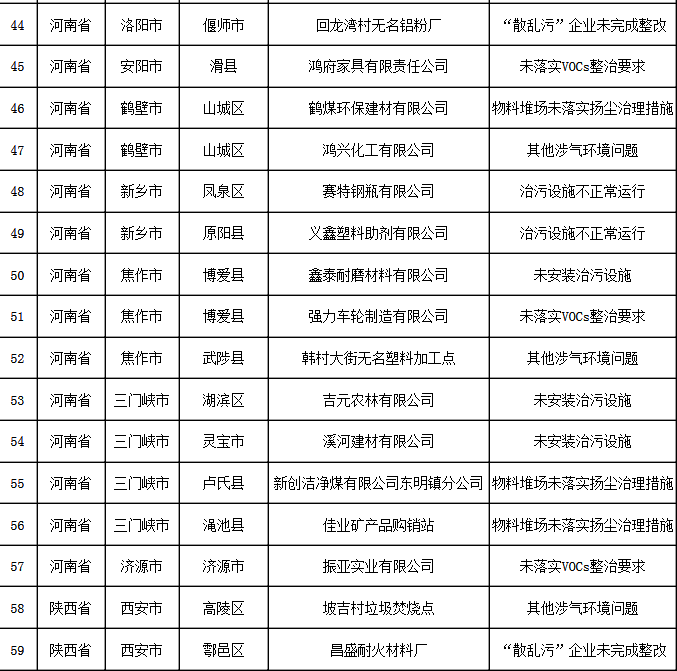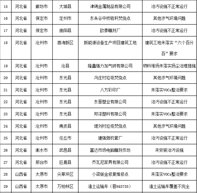 11月17日強(qiáng)化監(jiān)督發(fā)現(xiàn)涉氣環(huán)境問(wèn)題匯總表
