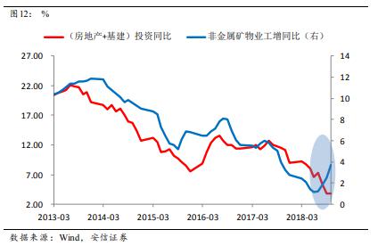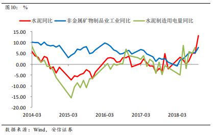 但隨后我們看到,鋼鐵價格和生產(chǎn)都在明顯走強,這意味著需求是較強的;而另一方面基建投資在明顯走弱,這可能意味著房地產(chǎn)投資可能要好于預(yù)期。一個可能的解釋是,房地產(chǎn)企業(yè)2018年資金緊張,但又想加大土地購置,因此房企拿地后,趕緊開工至總投資額的25%之后馬上辦理預(yù)售證后開盤銷售,盡快回款,但之后緩慢施工。一般來說,房屋總投資25%的進程都已經(jīng)建至地面以上,打基礎(chǔ)的部分大概要消耗鋼筋水泥的一半左右,這使得水泥包括鋼鐵的消耗量大增。