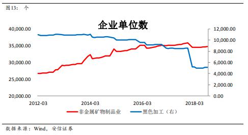 第一個解釋還需要更多的證據(jù)。關(guān)于第二個解釋,我們知道鋼鐵煤炭的去產(chǎn)能盛行于2016-2017,但水泥行業(yè)的動作要晚,去年才頒布了《水泥行業(yè)去產(chǎn)能行動計劃(2018~2020)》。特別的,從企業(yè)單位數(shù)這個指標來看,水泥行業(yè)直到2017年的單位數(shù)還在增長,而鋼鐵、有色、化工等行業(yè)的企業(yè)單位數(shù)從2015年以來都是在下降的。因此,水泥行業(yè)的供給側(cè)改革可能導(dǎo)致幸存者偏差的問題,使得統(tǒng)計數(shù)據(jù)高估。