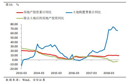 第三個解釋或許更為重要。2018年以來市場一致的認識是,房地產(chǎn)企業(yè)加大了土地購置,土地購置費大幅增長;另一方面,今年的房地產(chǎn)投資數(shù)據(jù)一直在10%左右波動,因此倒算出來的包括建安等在內(nèi)的其他部分投資同比出現(xiàn)負增長。所以,市場一度相信剔除土地后的實際投資并不樂觀。