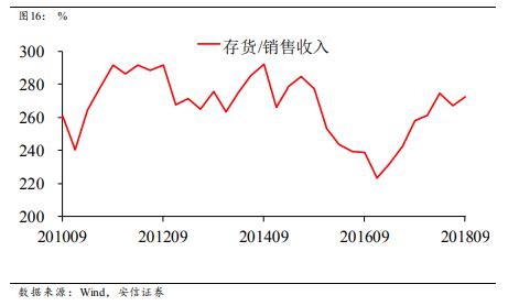 表征“基建+房地產(chǎn)”內(nèi)需的水泥的各項指標在十月出現(xiàn)顯著反彈,原因可能是基建的大幅反彈或者是限產(chǎn)季到來前的搶產(chǎn)。但水泥今年以來持續(xù)的強勢值得關(guān)注。我們認為,一種可能是水泥行業(yè)的供改導(dǎo)致統(tǒng)計上的數(shù)字高估;另一種可能是2018年房地產(chǎn)開發(fā)模式的變化導(dǎo)致了新開工的高企支撐了水泥及鋼鐵的高漲。房企拿地高峰或已過去,未來可能預(yù)見的是房屋新開工增速下降以及鋼鐵水泥需求的下降,這與限產(chǎn)行業(yè)供給上升的疊加效果將可能導(dǎo)致鋼鐵水泥價格的大幅下滑。