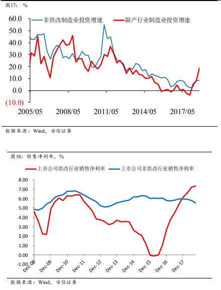 目前的關(guān)鍵問題是,這個回升將持續(xù)到什么時候。我們認為,這可能要等到供改行業(yè)的銷售凈利率回到相對正常的水平。目前來看,這個過程還將延續(xù)一段時間。因此,即使明年的非供改行業(yè)的制造業(yè)投資出現(xiàn)下降,供改行業(yè)的制造業(yè)投資依然保持高水平,形成對沖,導(dǎo)致制造業(yè)投資的下滑幅度可能并不會太大。