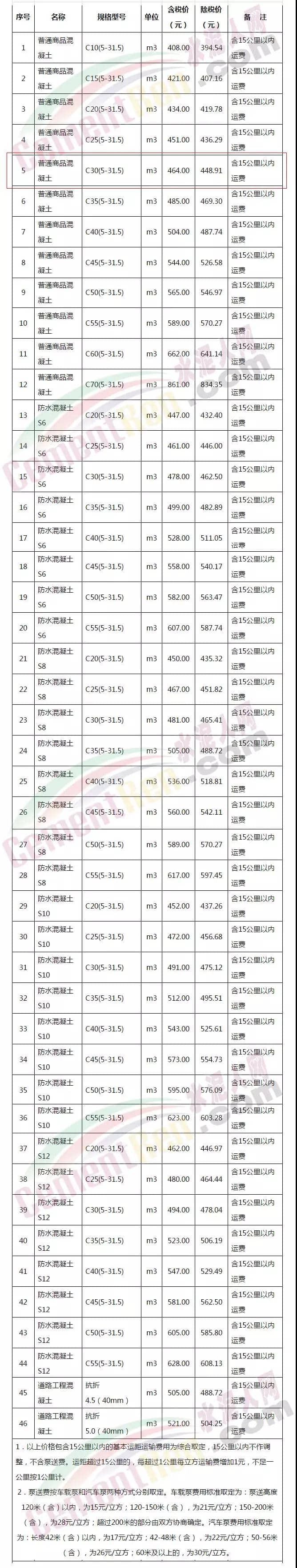 從武漢混凝土協(xié)會近期發(fā)布的《武漢地區(qū)2018年11月16日至11月30日綜合信息價》來看市場主流42.5級散裝普通硅酸鹽水泥價格已達572.22元/噸(含稅)。32.5級袋裝礦渣硅酸鹽水泥已經(jīng)達564.94元/噸。C30(5-31.5)普通商品混凝土信息價已達464元/立方米。