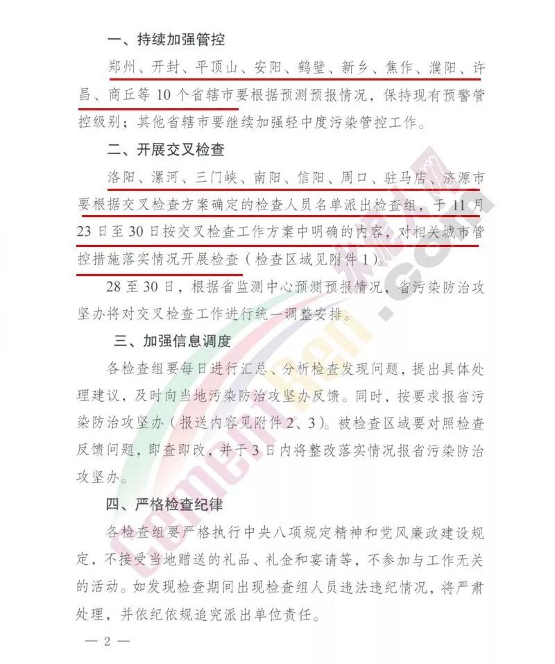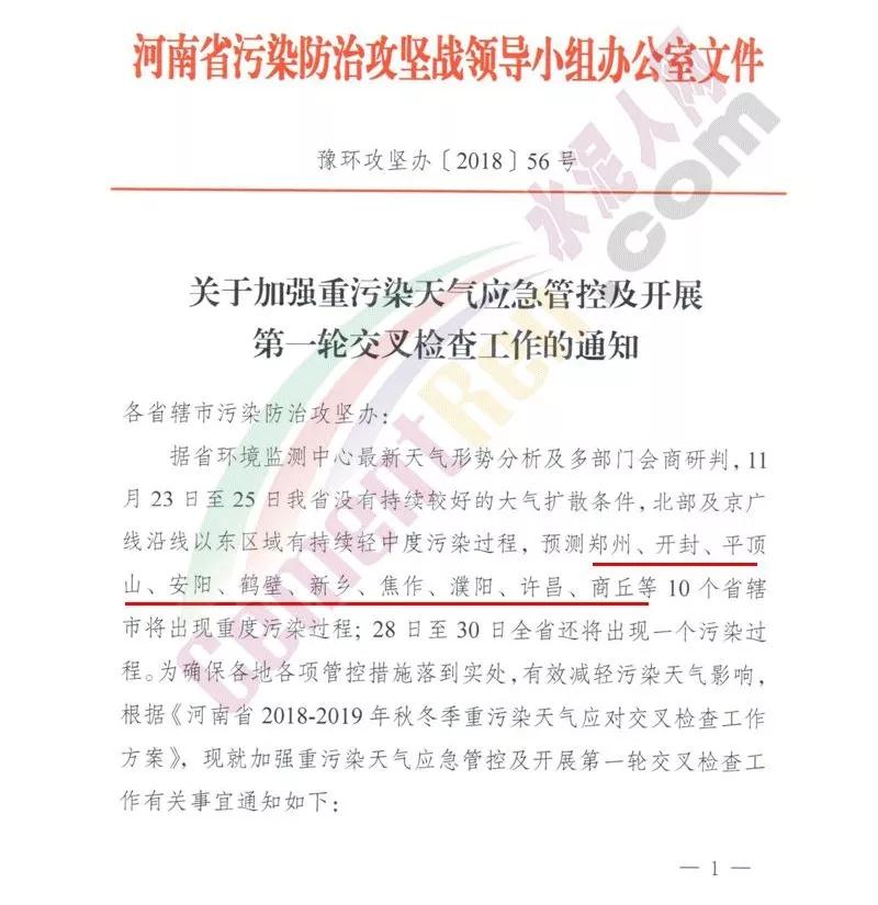 為確保各地各項管理措施落到實處,有效減輕污染天氣影響,根據(jù)《河南省2018-2019年秋冬季重污染天氣應(yīng)對交叉檢查工作方案》,就加強重污染天氣應(yīng)急管控及開展第一輪交叉檢查工作。