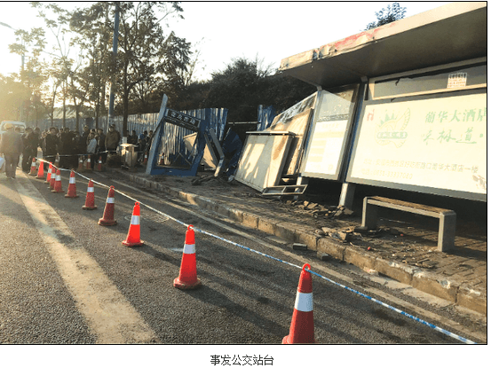 事發(fā)地點位于安順花鳥市場公交站臺,是一座港灣式公交站臺,現(xiàn)場有一些血跡,同時,地面撒滿了大量水果。