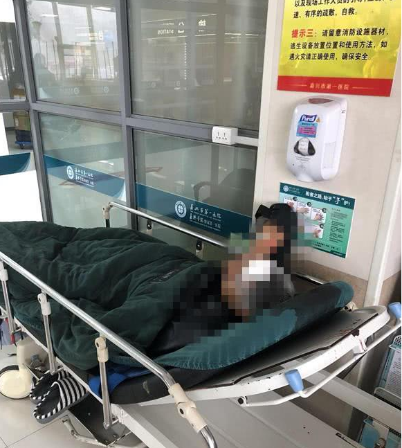今天早上,有市民報(bào)料,嘉興市區(qū)第一醫(yī)院送來了三名被炸傷的工人,傷勢(shì)不輕。接到報(bào)料之后,記者立即趕到醫(yī)院,在急診留觀室見到了被炸傷的楊師傅,他躺在病床上,額頭上包著厚厚的紗布,人看上去比較虛弱。