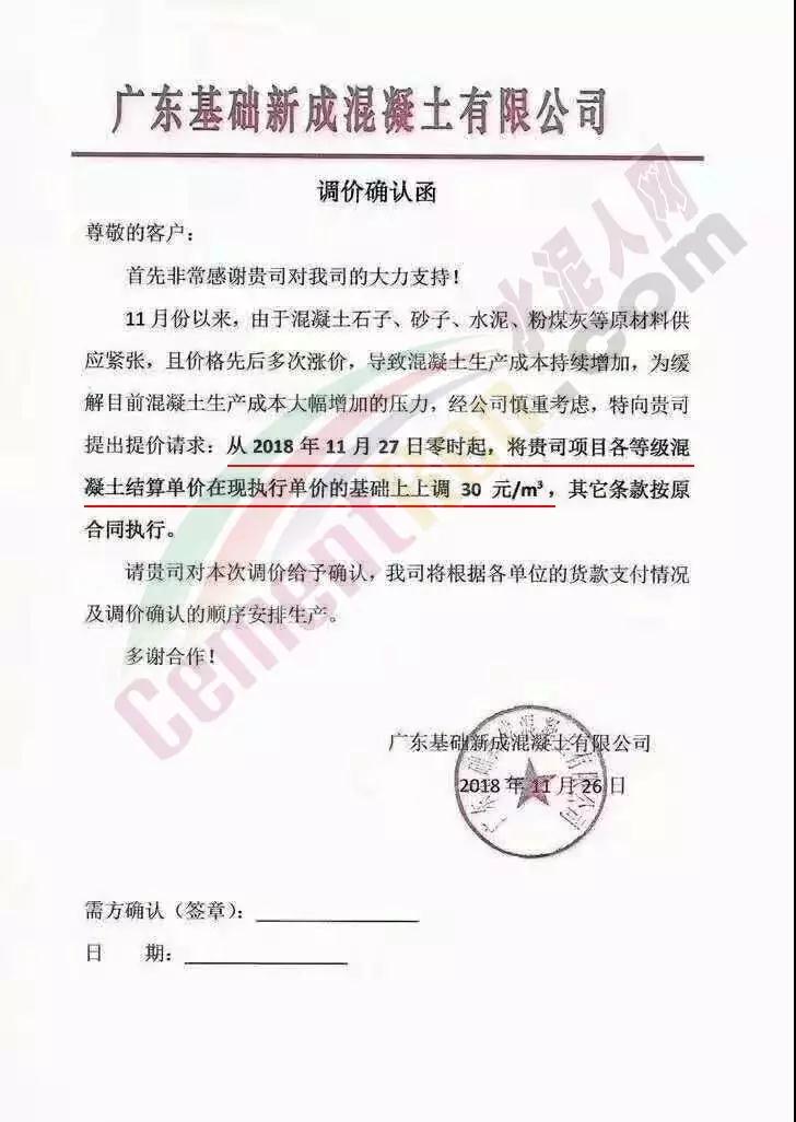 為了緩解目前市場原材料價格連續(xù)上升而導致混凝土生產(chǎn)成本大幅增加的壓力,根據(jù)目前市場變化,從即日起,各等級混凝土結(jié)算單價在現(xiàn)執(zhí)行單價的基礎上上調(diào) 30元/立方米;砂漿的結(jié)算單價在現(xiàn)執(zhí)行單價的基礎上上調(diào)30-50元/立方米。