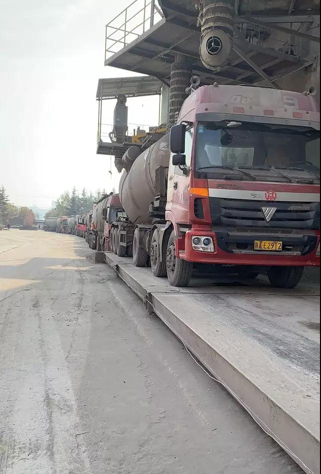 門前排隊車輛有條不紊進入工廠灌裝水泥
