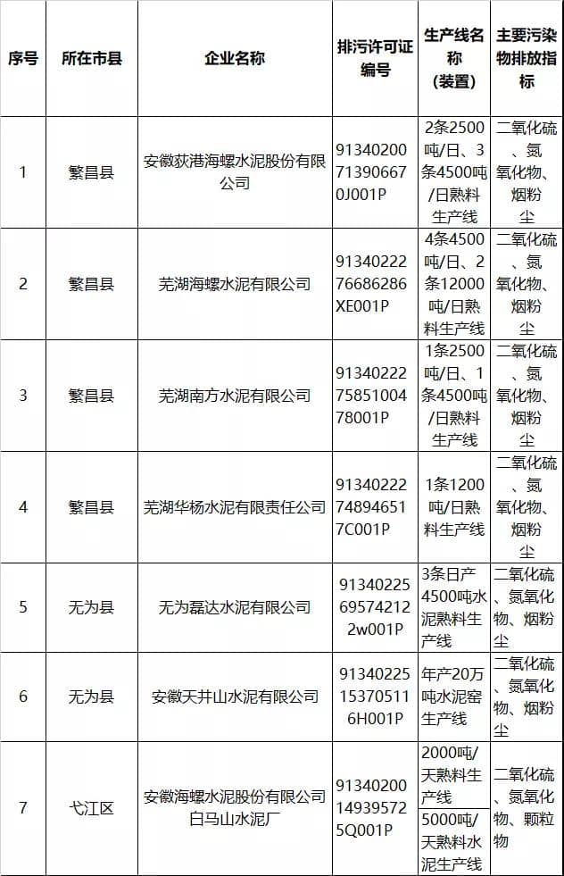 蕪湖市重點水泥行業(yè)企業(yè)(生產(chǎn)線)