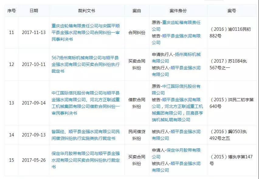 金強(qiáng)水泥投產(chǎn)后,似乎其發(fā)展之路并不平坦,曲折坎坷,先是2015年爆出股權(quán)轉(zhuǎn)讓京蘭水泥,后是法律訴訟案件不斷,官司纏身!相關(guān)資料顯示僅2017-2018就涉及15起法律訴訟。