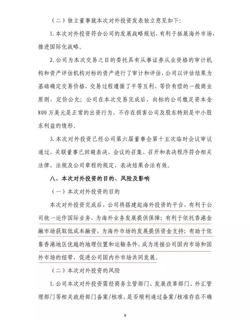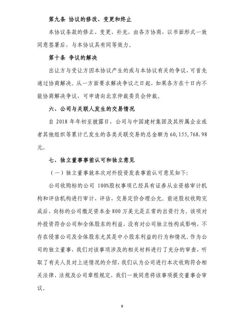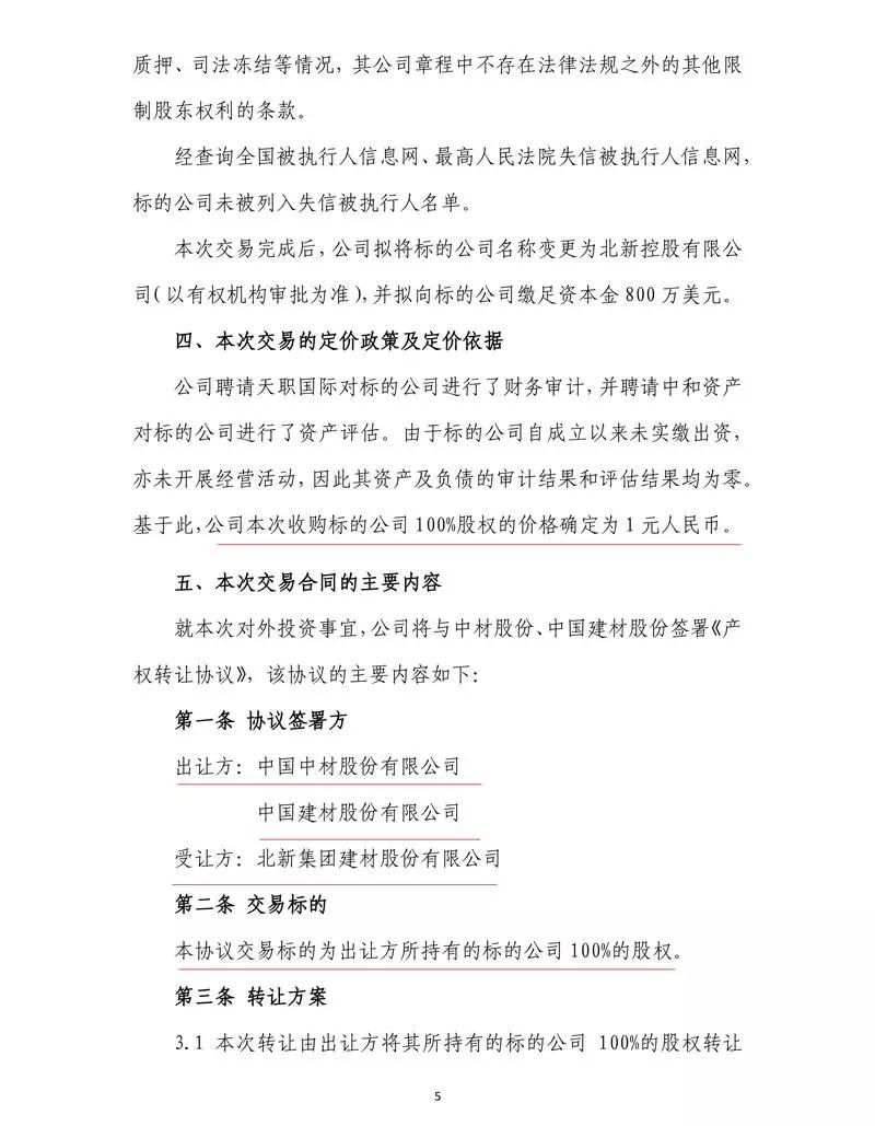 標(biāo)的公司注冊(cè)資本800萬(wàn)美元,尚未繳納到位,本次交易完成后,公司擬將標(biāo)的公司名稱變更為北新控股有限公司,并擬向標(biāo)的公司繳足資本金800萬(wàn)美元。公告原文如下:
