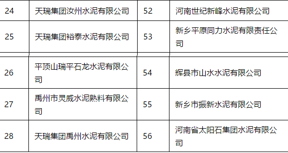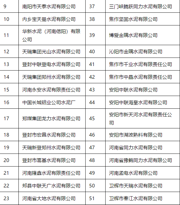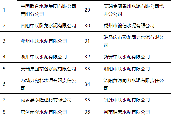 僅水泥企業(yè)名單