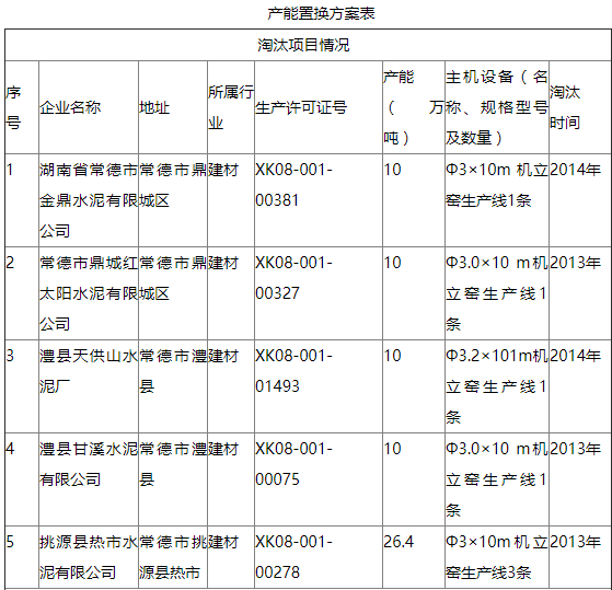 注:2014年常德市制定該項目產(chǎn)能置換方案時,國家尚未出臺具體的產(chǎn)能置換辦法,即《工業(yè)和信息化部關于做好部分產(chǎn)能嚴重過剩行業(yè)產(chǎn)能置換工作的通知》(工信部產(chǎn)業(yè)〔2014〕296號)和《工業(yè)和信息化部關于印發(fā)部分產(chǎn)能嚴重過剩行業(yè)產(chǎn)能置換實施辦法的通知》(工信部產(chǎn)業(yè)〔2015〕127號),故按《國務院關于化解產(chǎn)能嚴重過剩矛盾的指導意見》(國發(fā)〔2013〕41號)精神進行方案制定與確認。
