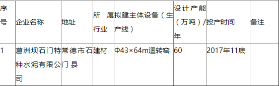 葛洲壩石門特種水泥有限公司年產(chǎn)60萬噸白色硅酸鹽水泥生產(chǎn)線技改項目產(chǎn)能置換方案已于2014年由常德市經(jīng)信委(常經(jīng)信[2014]54號)上報我委確認(湘經(jīng)信產(chǎn)業(yè)函[2014]345號),但置換方案未予公示和公告。按照《國務院關于化解產(chǎn)能嚴重過剩矛盾的指導意見》(國發(fā)〔2013〕41號文件)要求,于2018年11月20日至11月29日,在我廳網(wǎng)站公示了葛洲壩石門特種水泥有限公司年產(chǎn)60萬噸白色硅酸鹽水泥生產(chǎn)線技改項目產(chǎn)能置換方案(見附表),公示期間無異議,現(xiàn)予以公告。