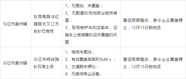 秋冬季期間環(huán)境執(zhí)法檢查發(fā)現(xiàn)問(wèn)題清單(12月份第一周)