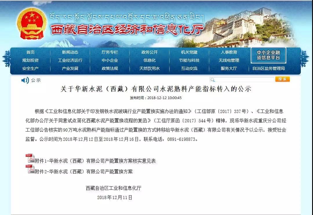 華新水泥(西藏)有限公司產(chǎn)能置換方案