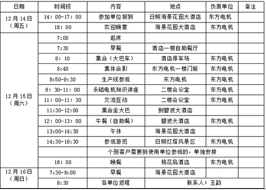 1、住宿費(fèi)、餐飲費(fèi),大巴車租賃費(fèi)均由日照東方電機(jī)有限公司承擔(dān);